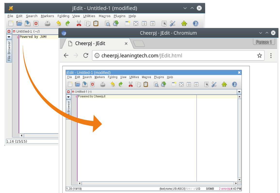 - CheerpJ works directly on Java bytecode, and does not require access to the Java source code.